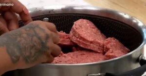 La Maciel armó un plato con parte de las 800 hamburguesas que compró.Varios participantes terminaron con dolor...